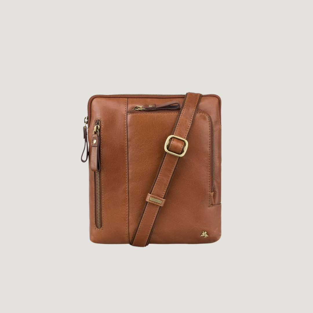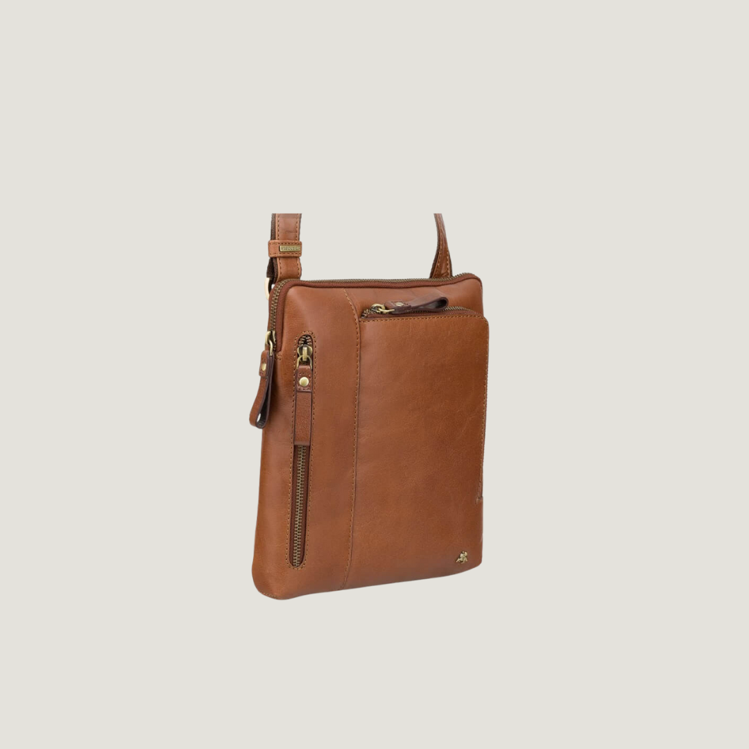Compactness has never looked better. This shoulder bag by VISCONTI is handcrafted from fine natural light brown leather,