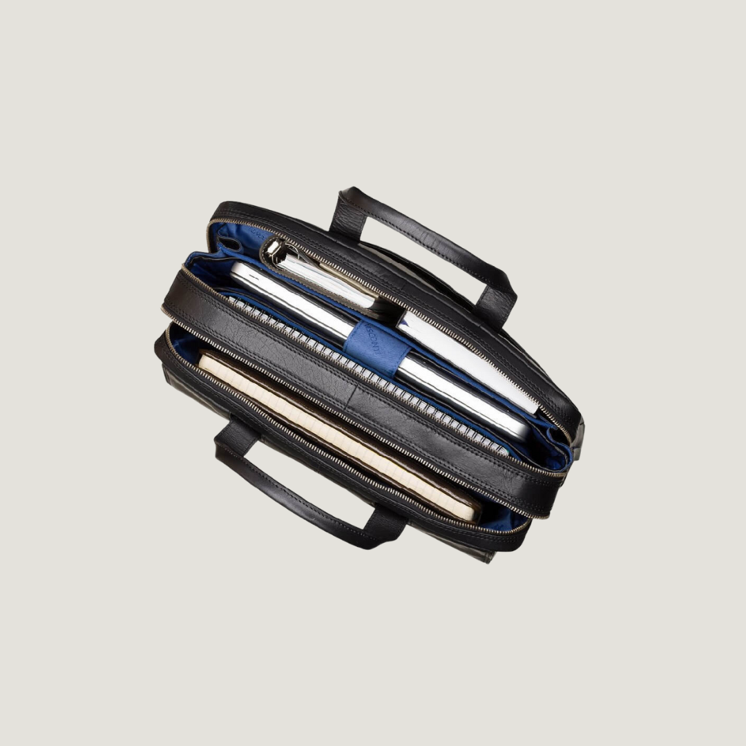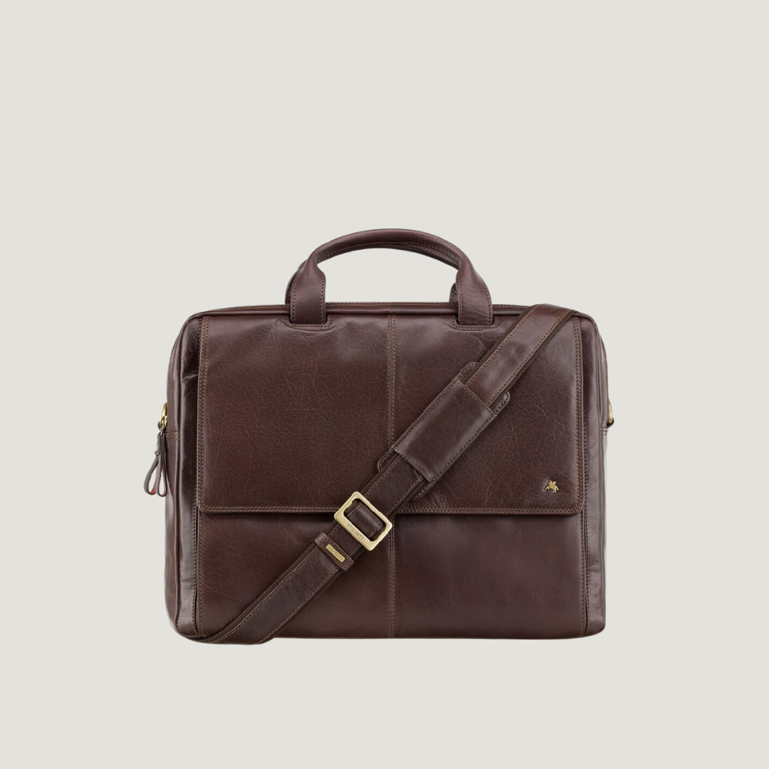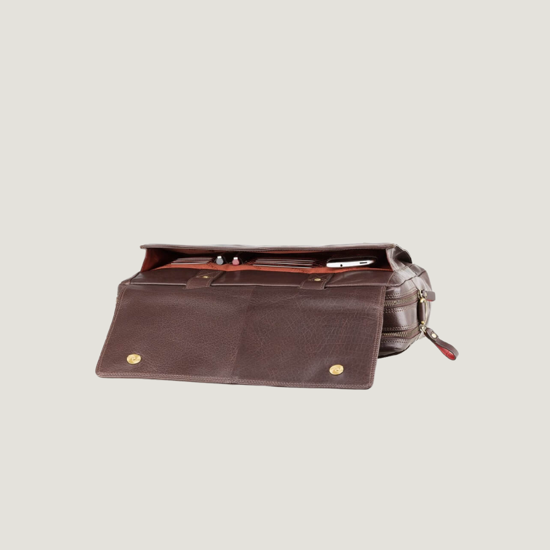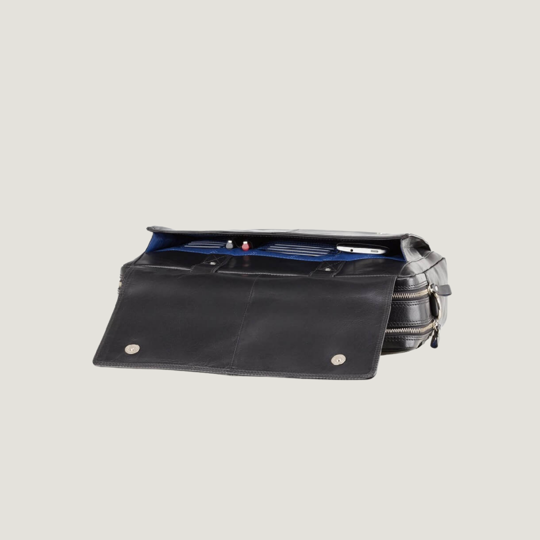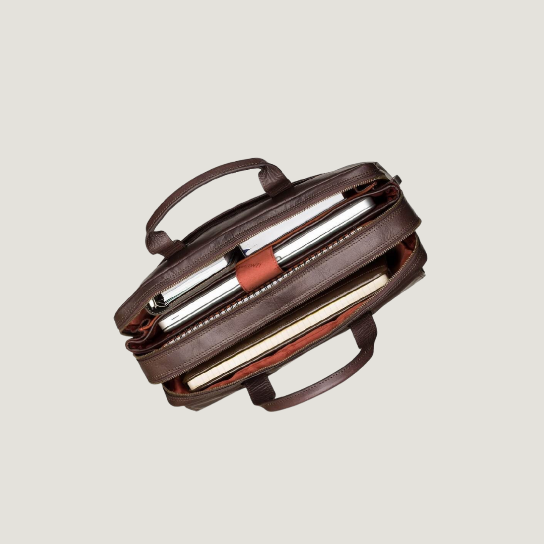 Brown Leather Business Bag with Blue Interior – VISCONTI