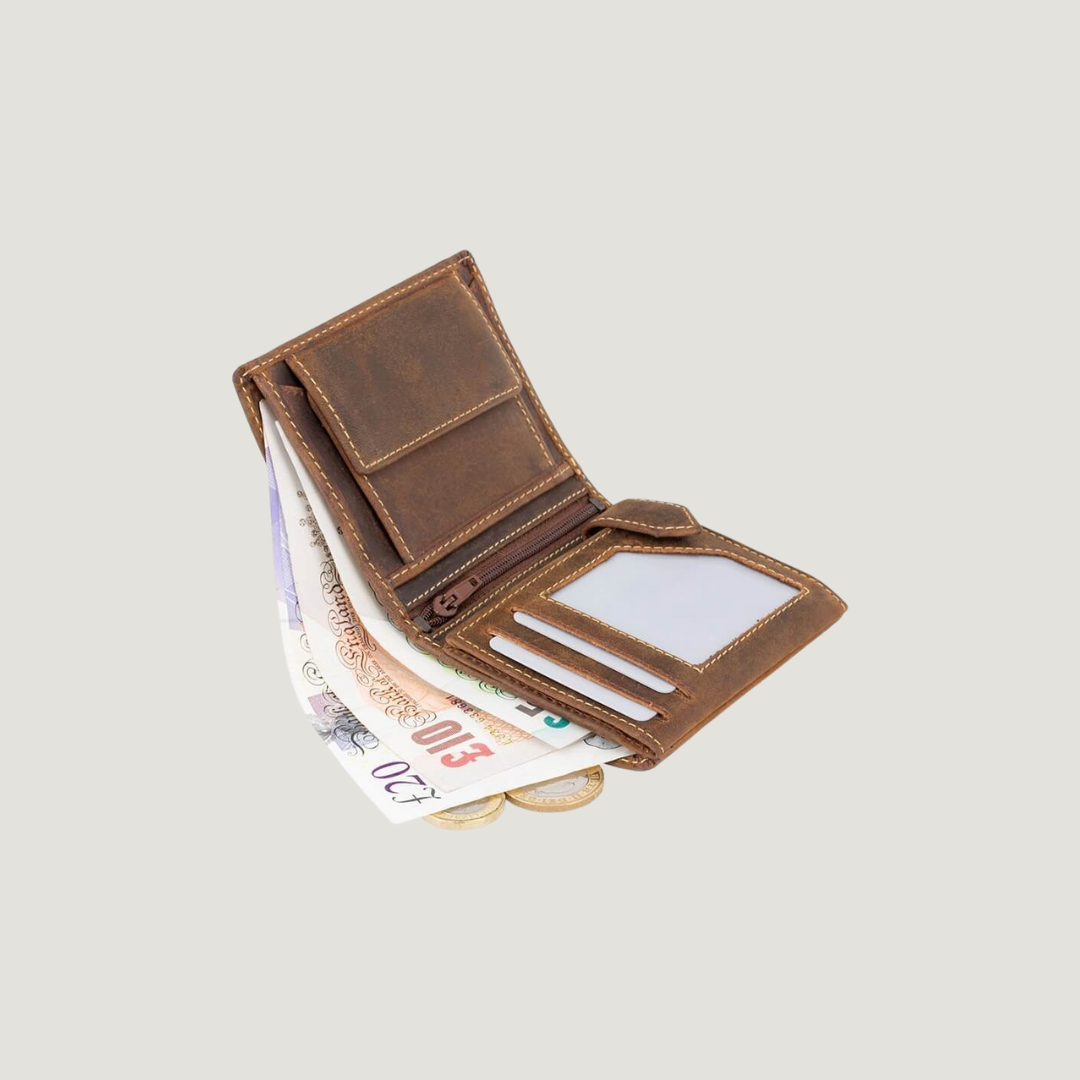authentic leather appeal. This wallet is handcrafted from rustic oiled leather,