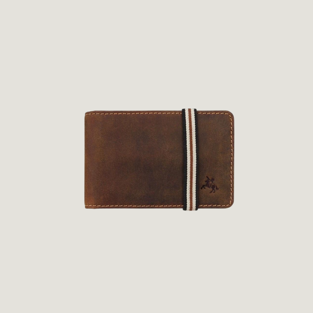 Compact Rustic Leather Wallet with Elastic Closure – VISCONTI