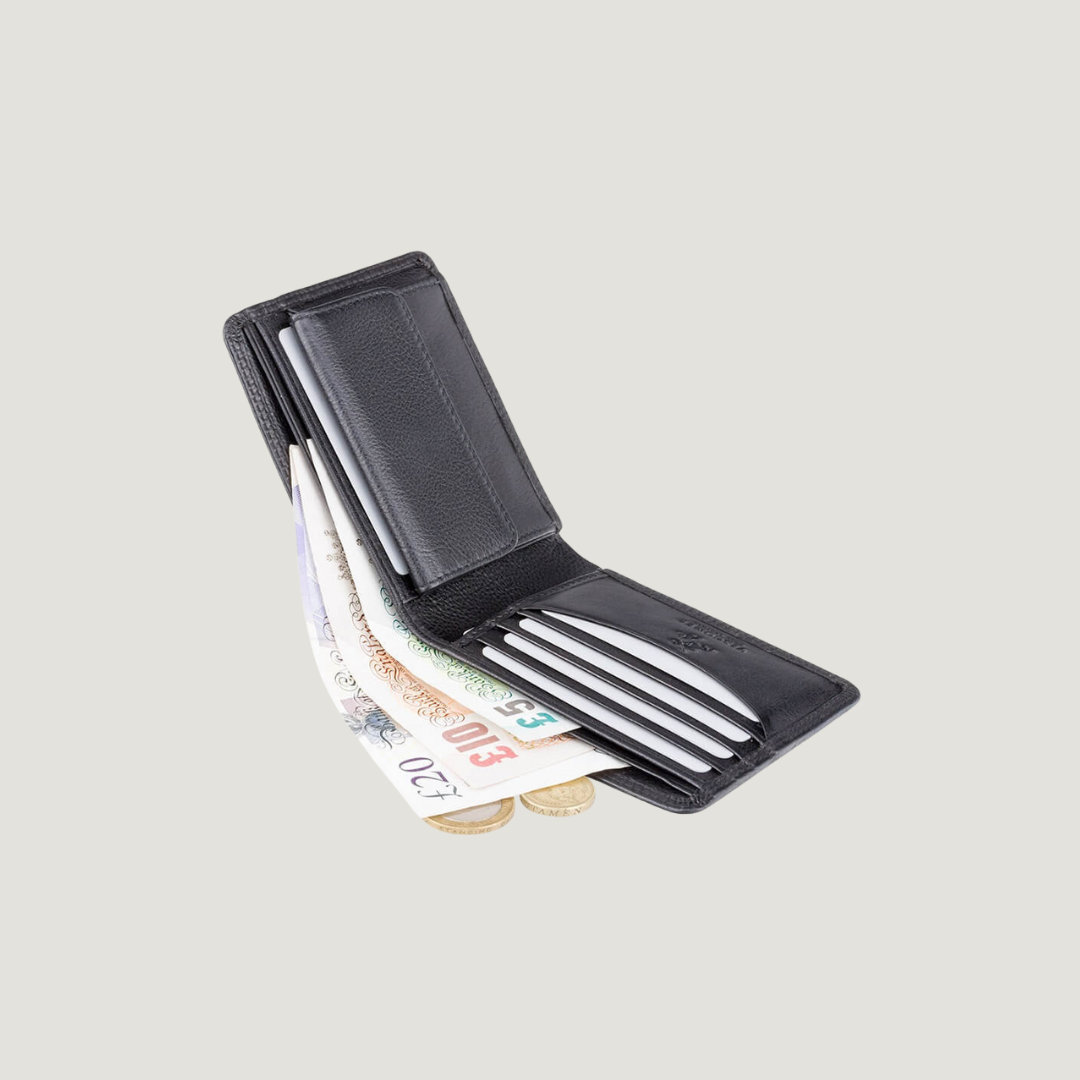 • החלוקה הקלאסית: השילוב המנצח והאהוב הכולל 4 תאים לכרטיסים, 2 תאים לשטרות, ותא למטבעות עם סגירת כפתור – כל מה שצריך להתנהלות יומיומית נוחה.