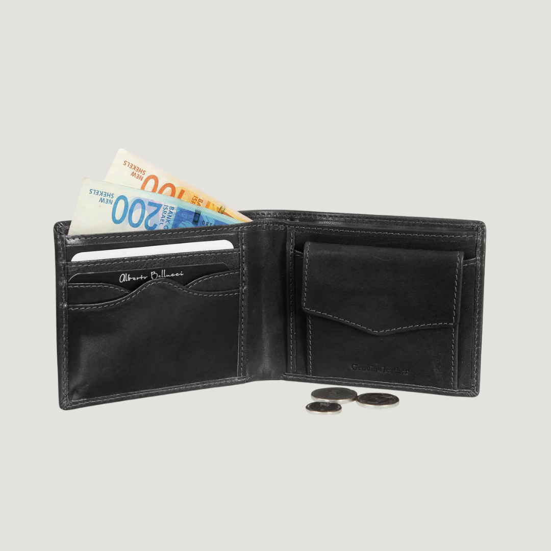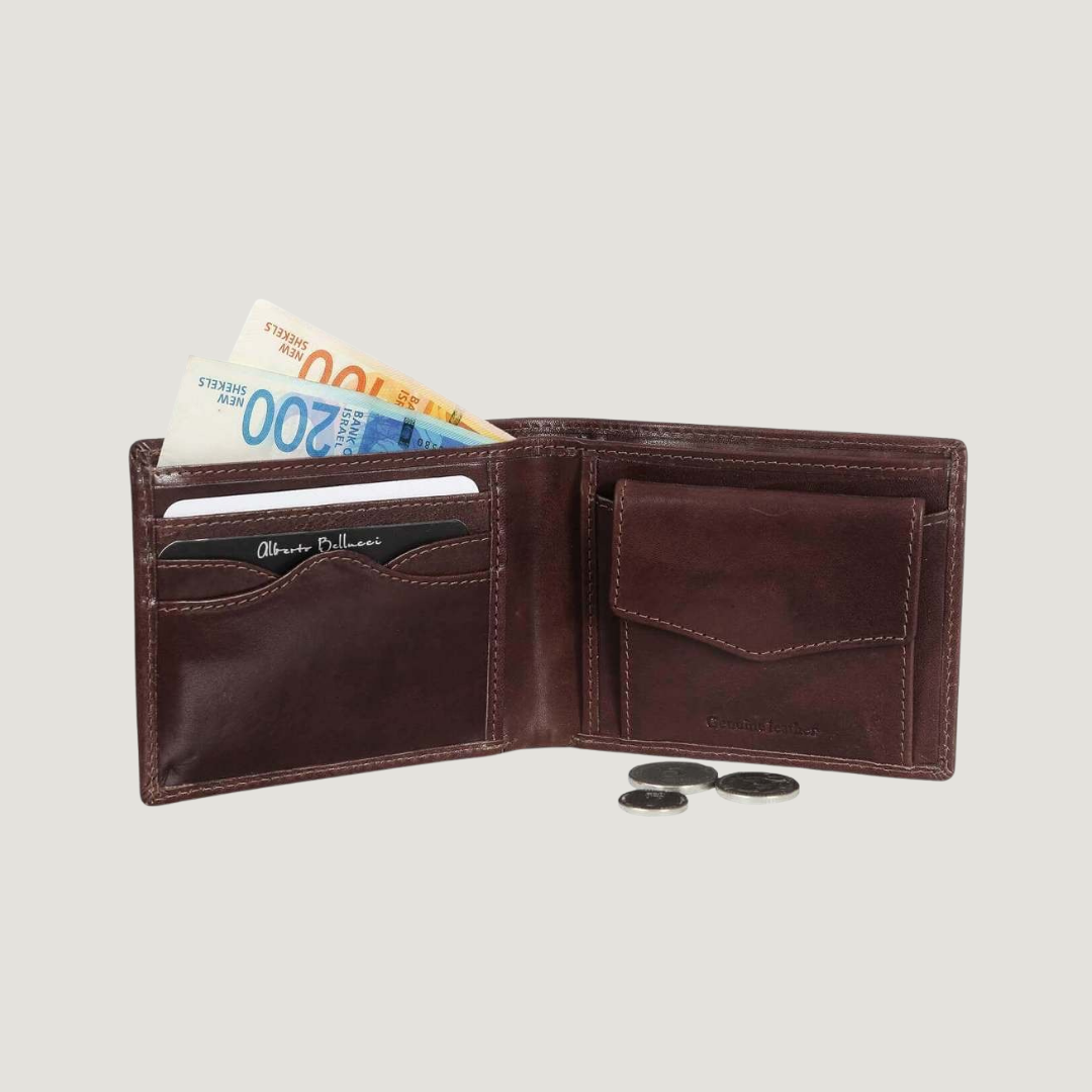 Classic Fine Leather Wallet with Secure Coin Pocket – Alberto Bellucci Collection Maintain a sleek and organized profile with this high-quality leather wallet. Perfectly sized for daily use without bulk, it combines refined Italian style with practical security features: