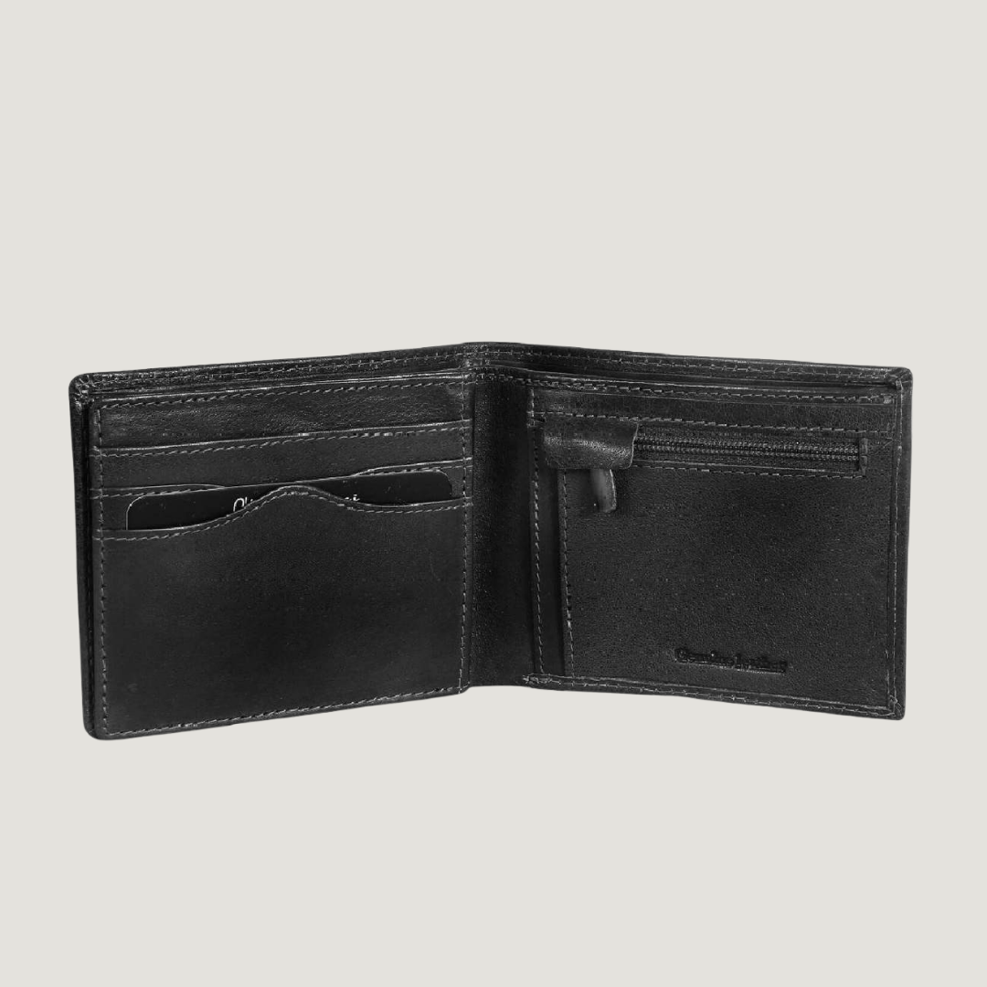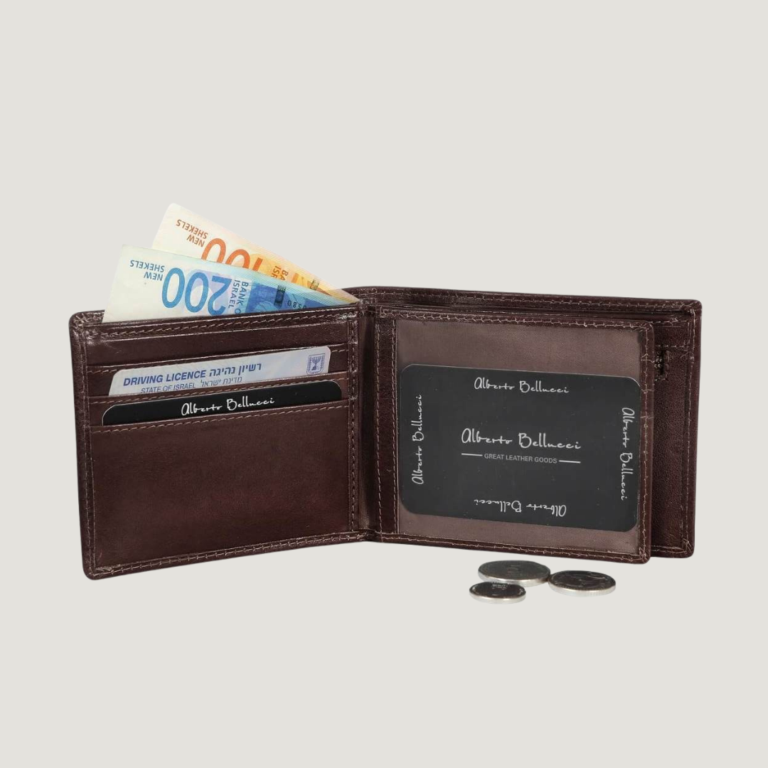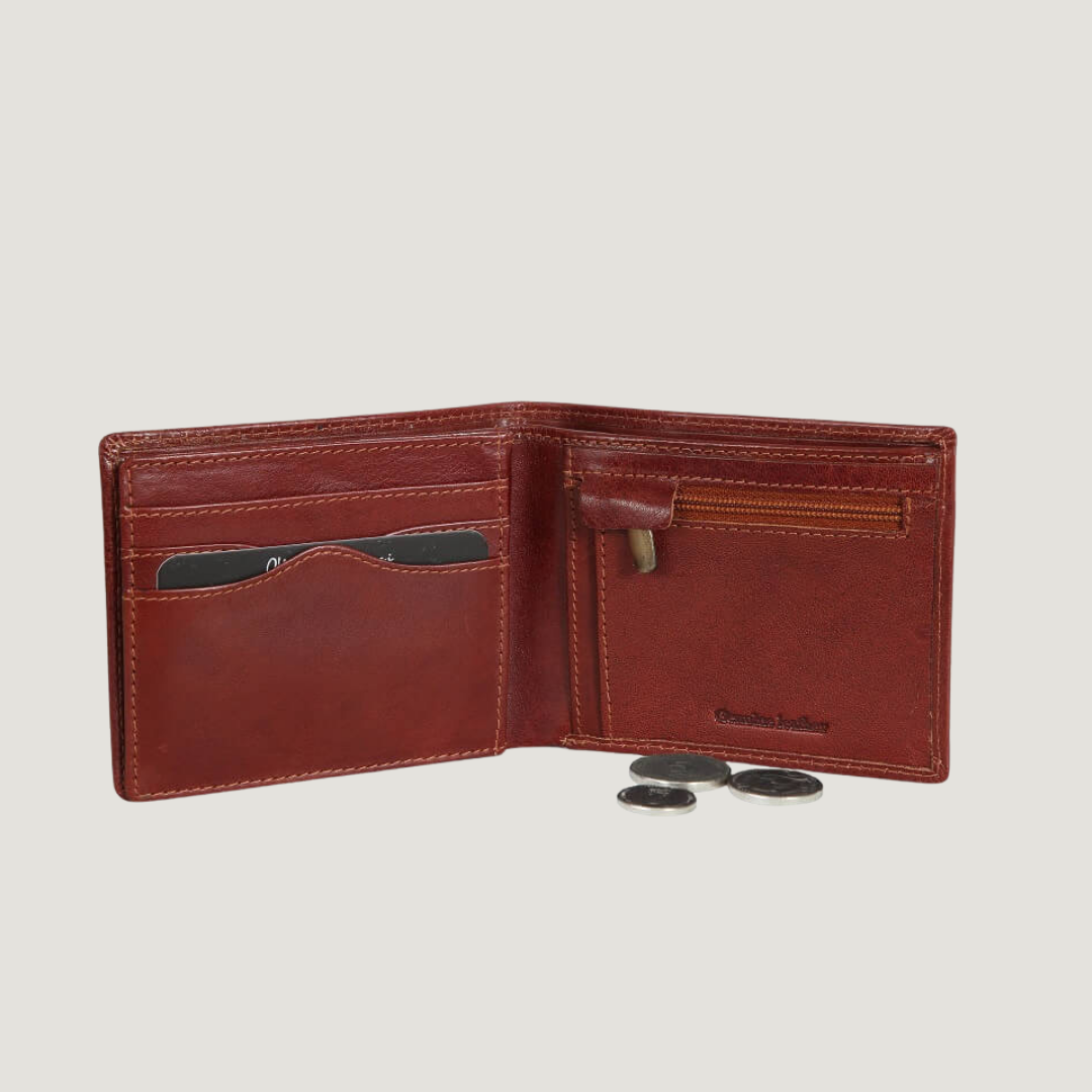 Premium Medium Leather Wallet with Zippered Coin Pouch – Alberto Bellucci Collection Elevate your everyday carry with this finely crafted leather wallet, designed to offer the perfect blend of style and utility. Featuring a smart internal layout to keep your essentials organized, it includes: