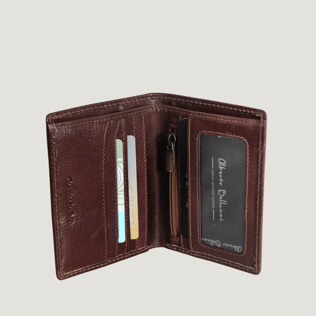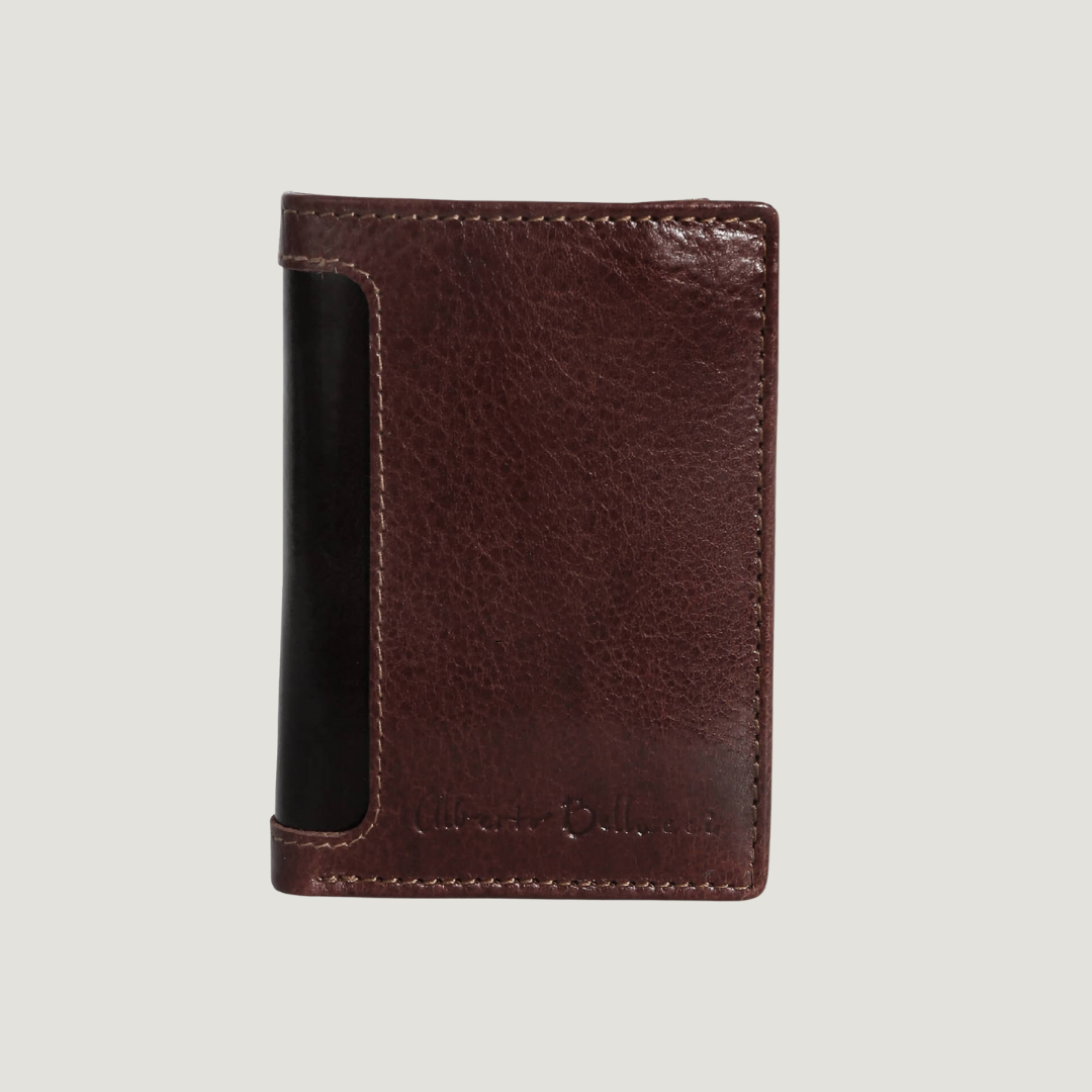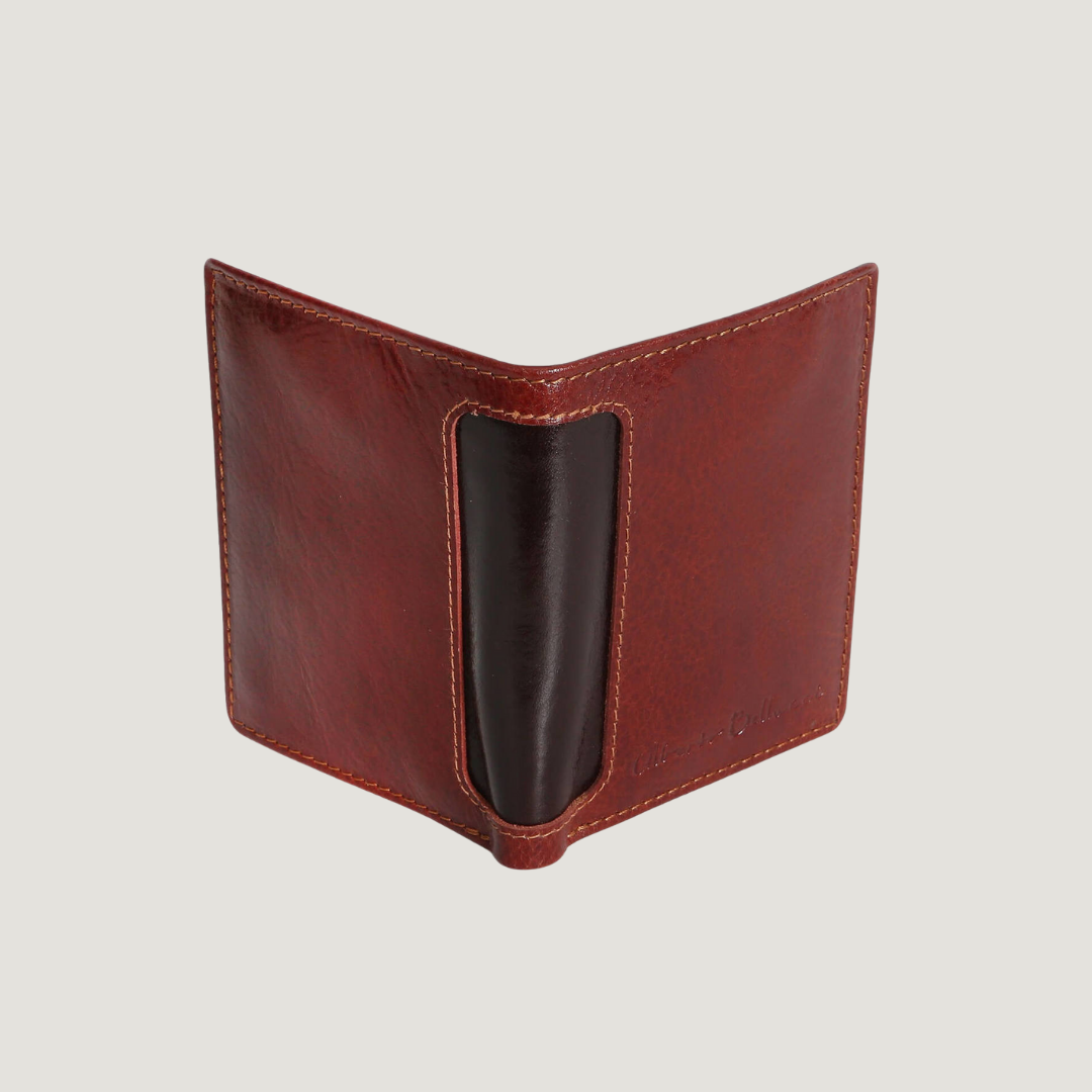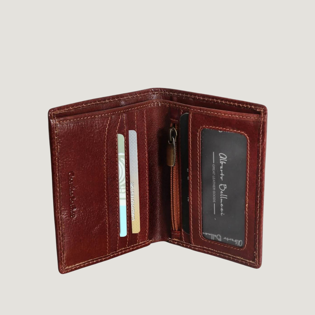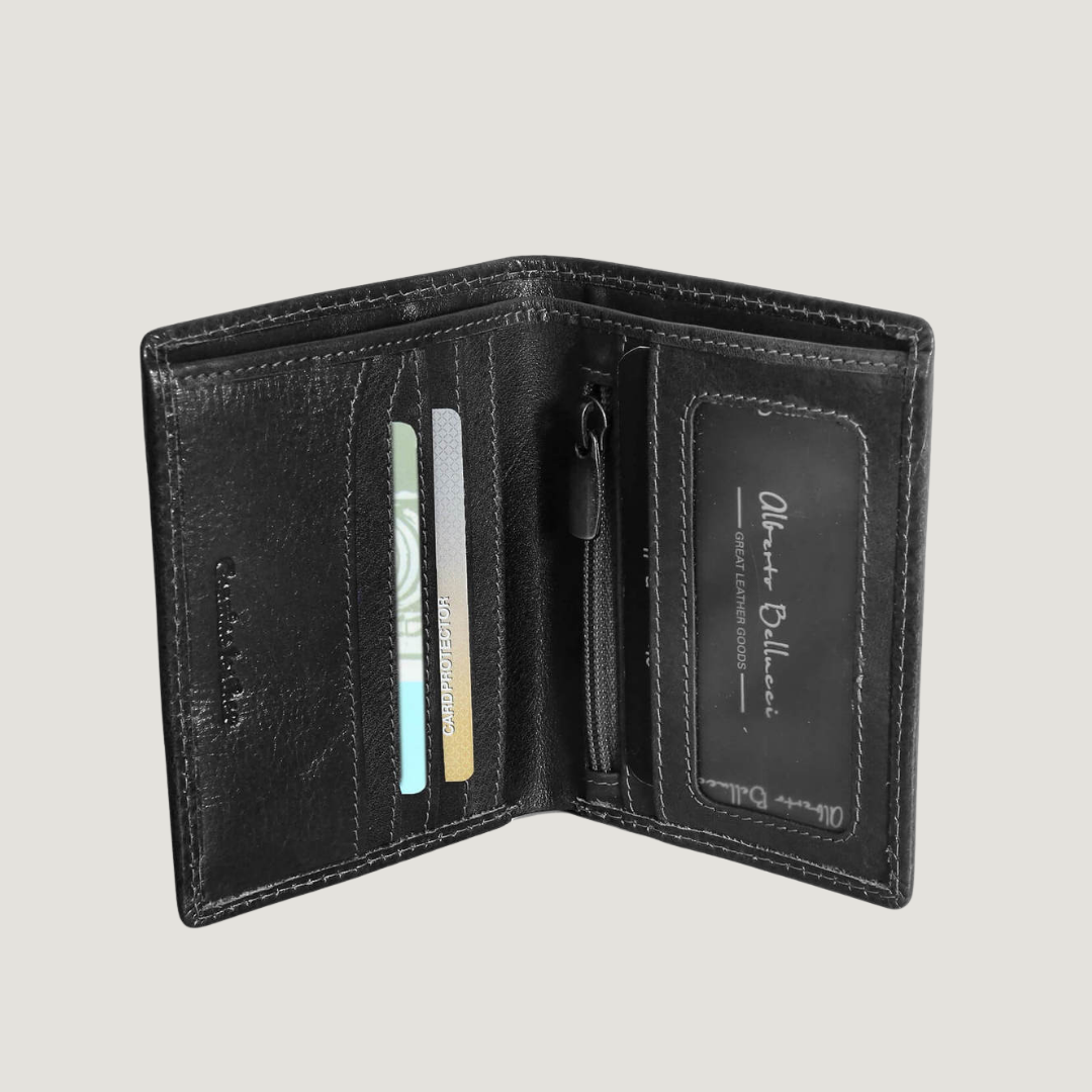 Compact Medium Leather Wallet with Deep Bill Pockets – Alberto Bellucci Collection Travel light without compromising on utility with this fine leather wallet. Featuring a medium, manageable profile that fits perfectly in any pocket, it is designed for smart organization: