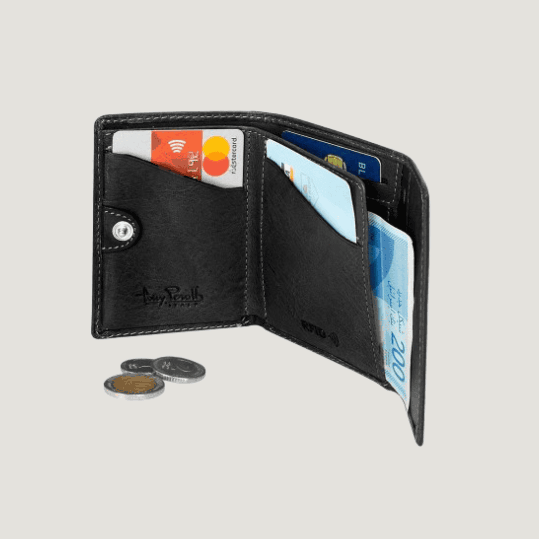 ב־Legacy Leather תמצאו ארנק של Tony Perotti — עם ריצ’רץ’ לכסף קטן, מקום לשטרות וסגירה מסודרת.