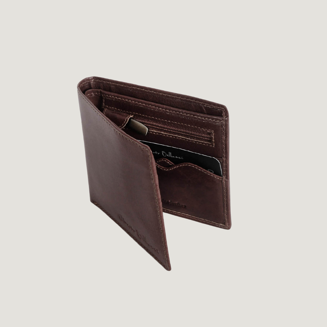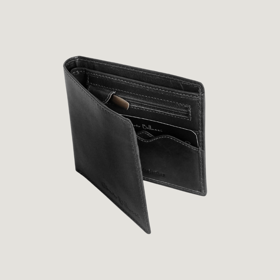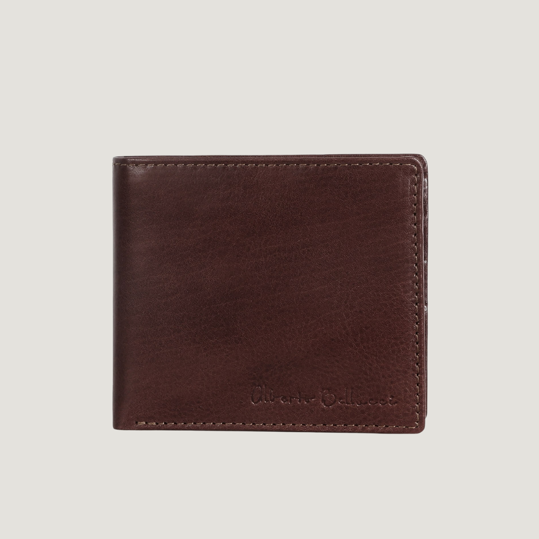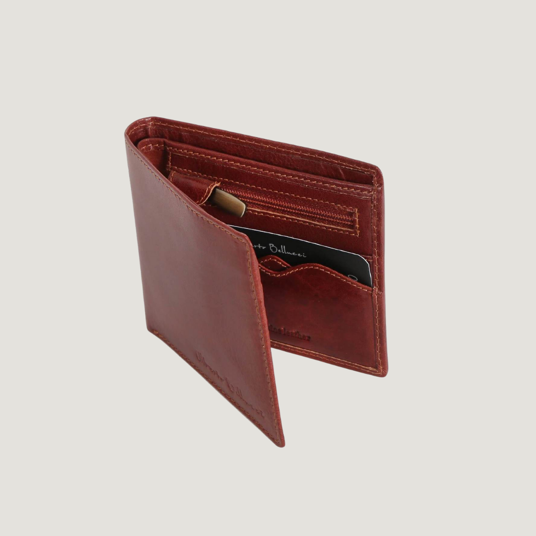 Medium Fine Leather Wallet with Vertical Flap – Alberto Bellucci Collection Enjoy the perfect balance of size and organization with this medium-sized fine leather wallet. Featuring a distinctive upward-opening flap for easy access and extra capacity, it is designed with: